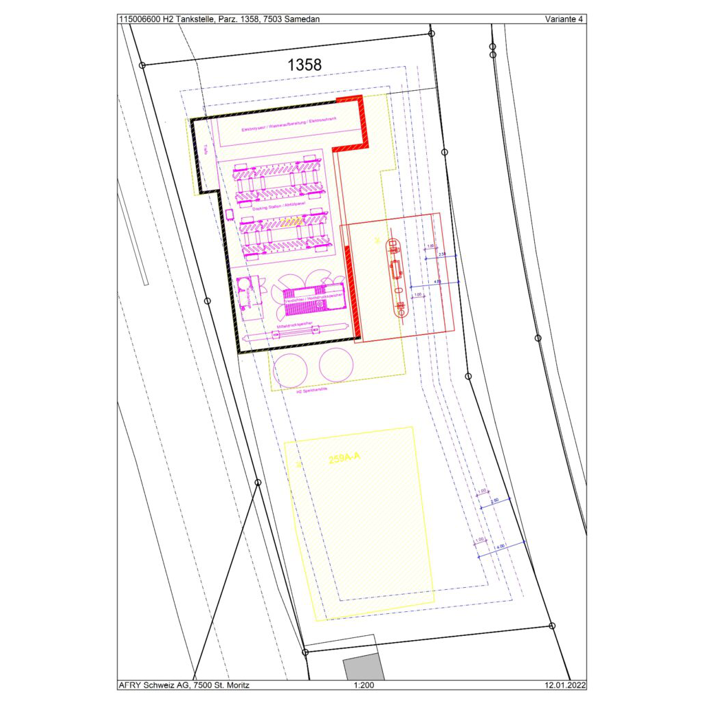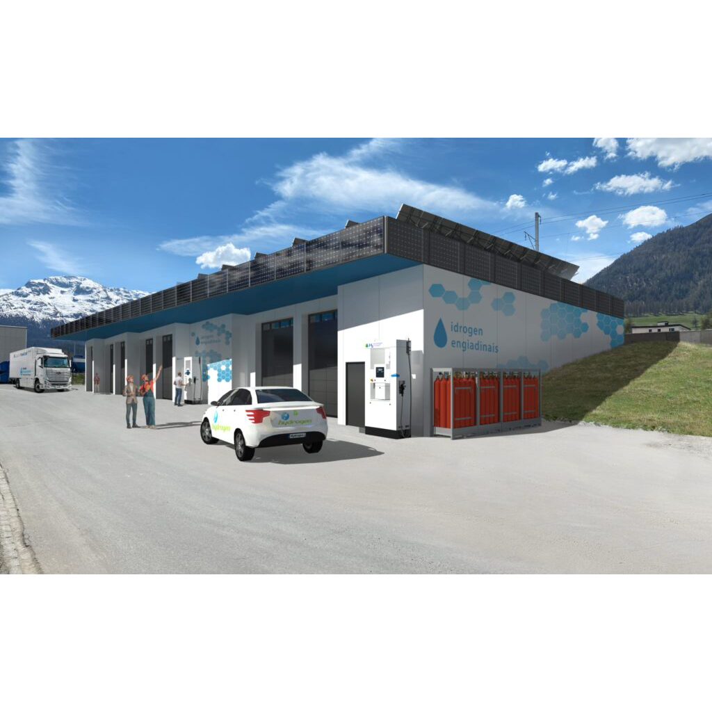 A hydrogen production facitlity including a hydrogen fillig station are being planned in Samedan. The hydrogen production will be supplied with power from the hydro electric plant in Punt Muragl.